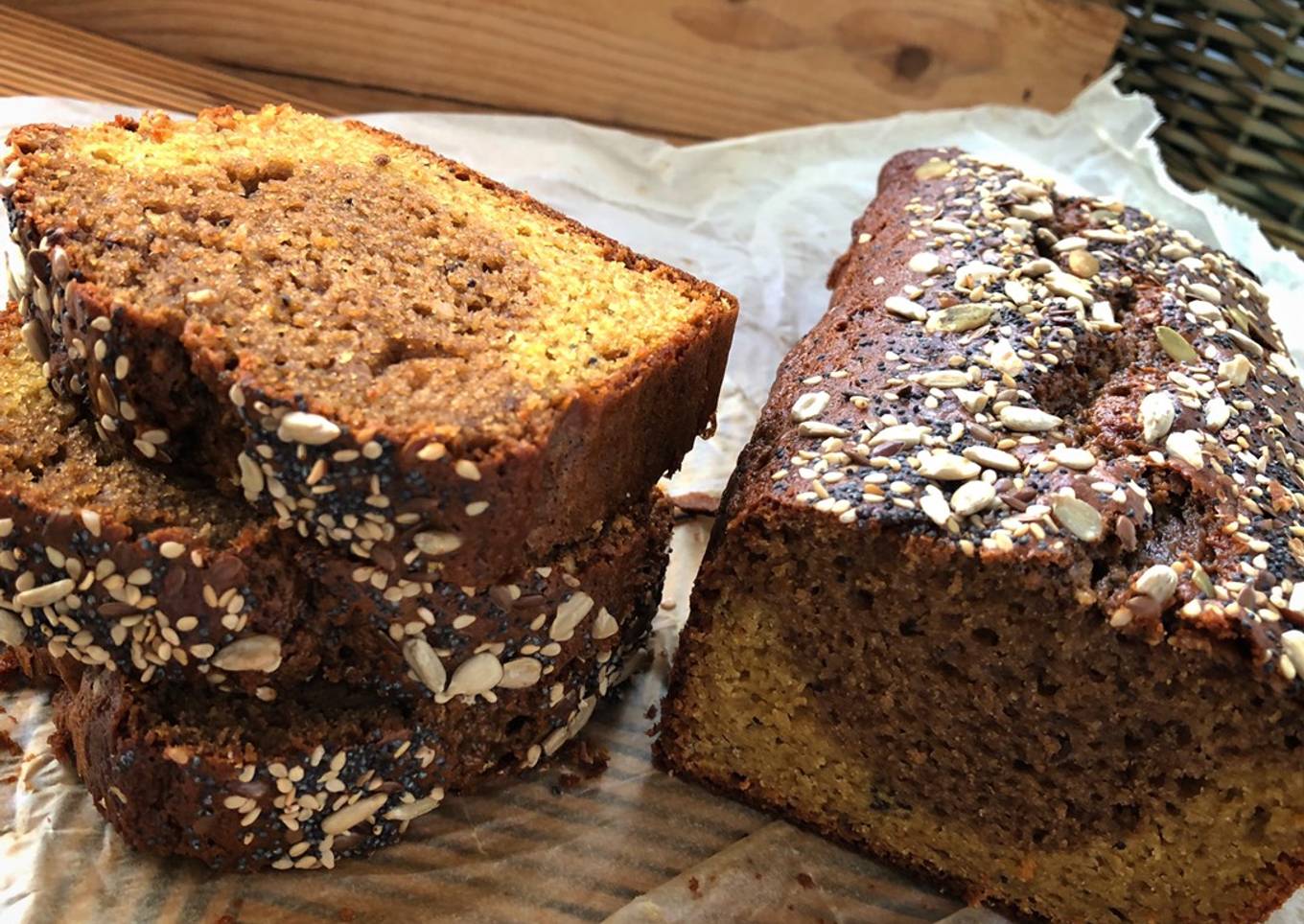 Bizcocho bicolor de aguacate con semillas