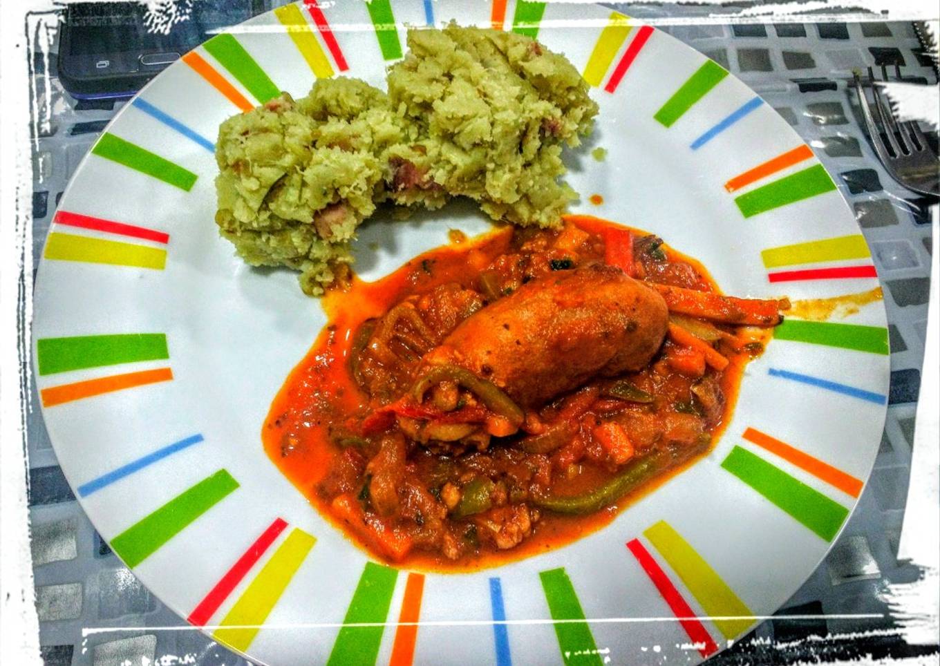 Hello everybody, hope you're having an incredible day today. Today, I'm gonna show you how to make a special dish, Chorizos a la Pomarola con Puré de Batata. It is one of my favorites. This time, I'm gonna make it a bit unique. This is gonna smell and look delicious.