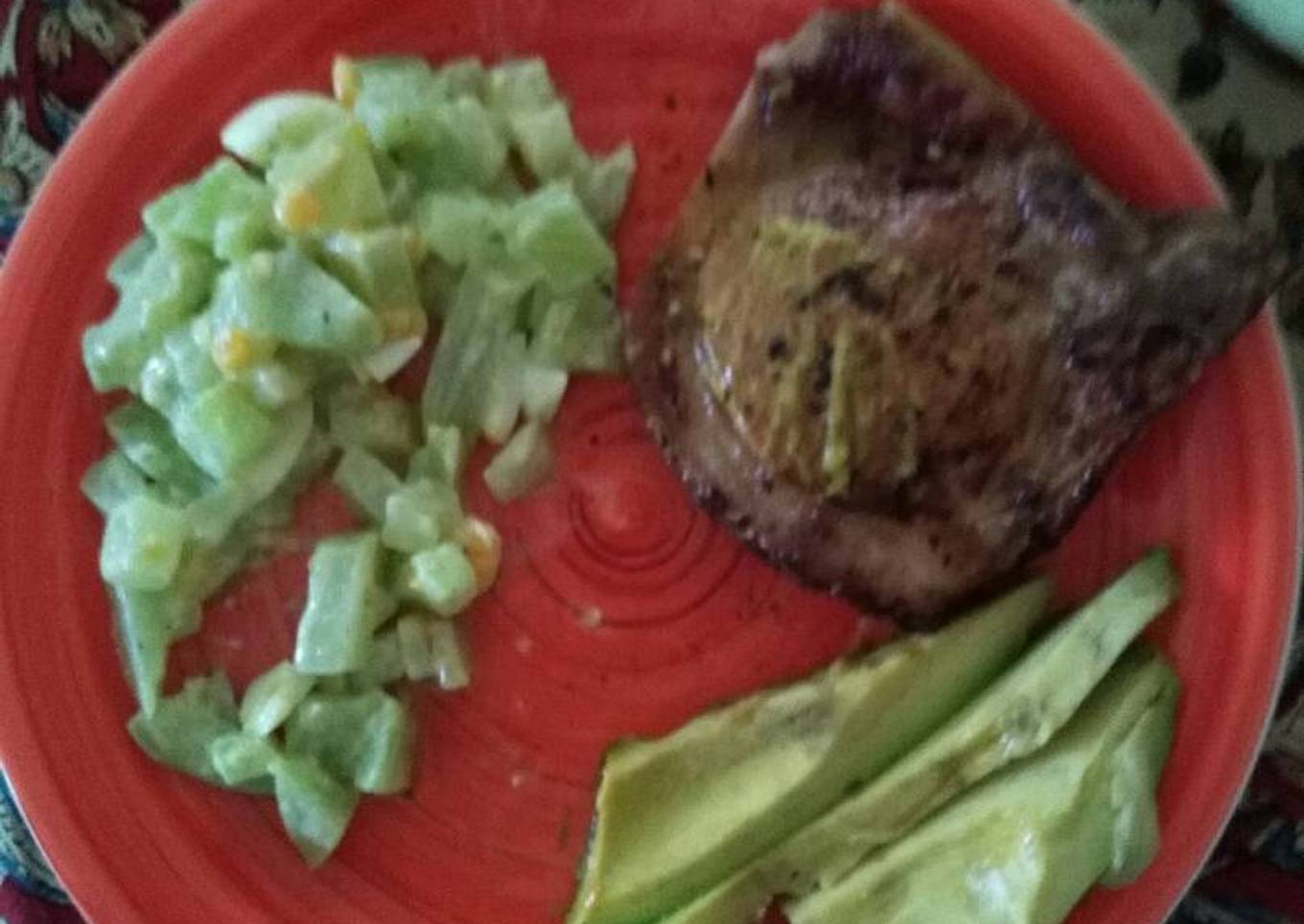 Hello everybody, it's Louise, welcome to my recipe page. Today, I'm gonna show you how to prepare a distinctive dish, Cetogénica: Chuleta de cerdo con piel ensalada de chayote y a... It is one of my favorites. For mine, I'm gonna make it a little bit unique. This is gonna smell and look delicious.