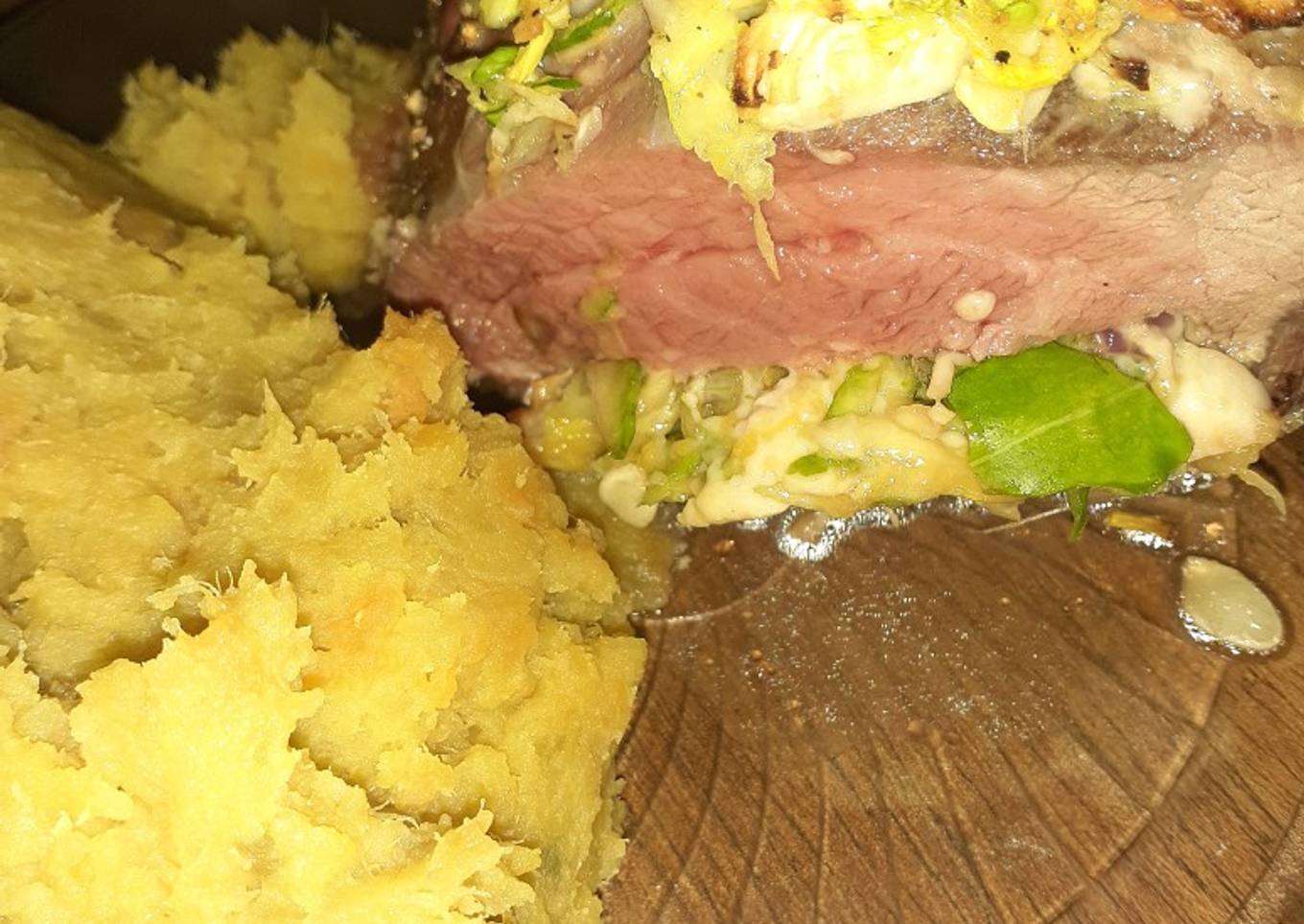Steps to make to make Colita de cuadril rellena con puré de batatas
