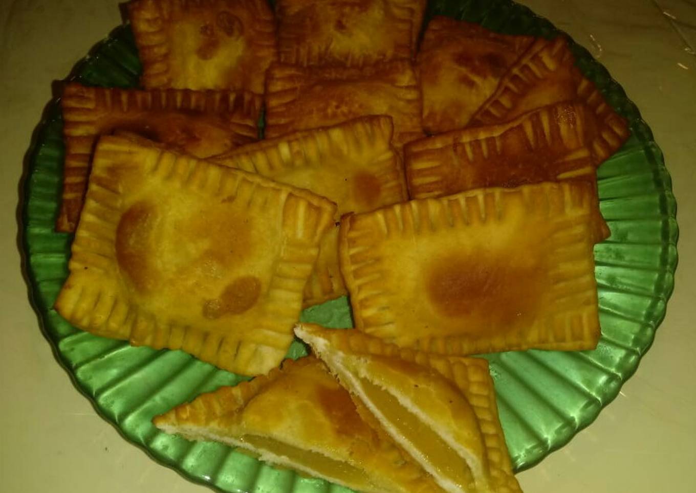 - Estirar la masa de un grosor como para tapa de empanadas, y cortar cuadraditos del tamaño que se quiera, poner en el centro el membrillo o batata y mojar un poco los bordes para cerrar con tenedor